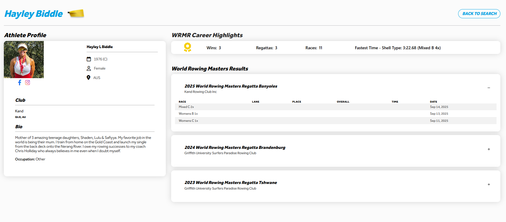 Hayley Biddle has jumped on board as a member of the World Rowing Masters Portal. The Australian native started rowing as a 13-year-old at high school.