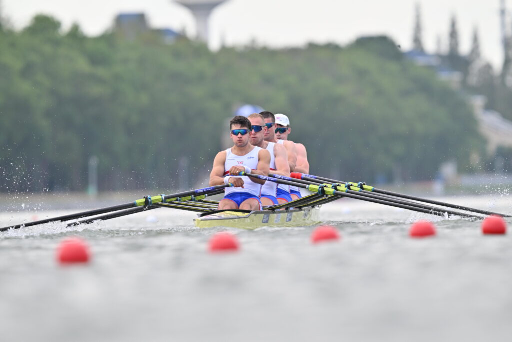 With five seconds splitting the six finalists in the men’s quadruple sculls, the medals could still go to any crew – but Great Britain and Italy continue to lead the pack. Italy won their semifinal in 5:43.89 and were able to look back and cruise the last 500m as the USA and Ukraine battled for second.