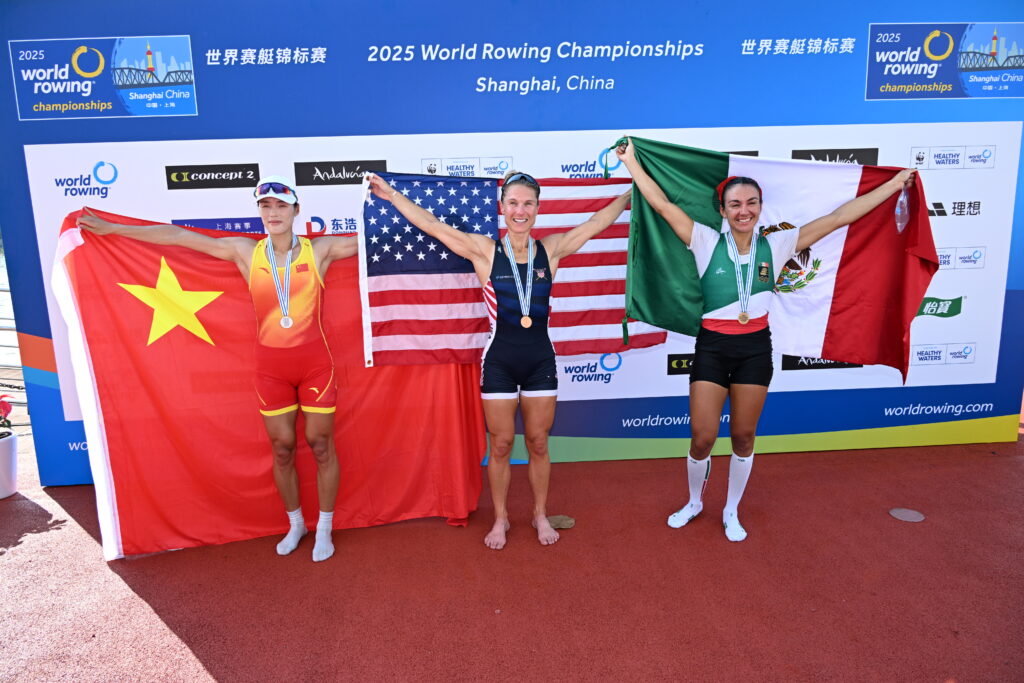 Mexican Kenia Lechuga won silver in the lightweight women’s single sculls two years ago in Belgrade and after two World Rowing Cup wins this season wanted to add the world title to her collection. But she had to settle for bronze, after paying for a lightning-fast first 1000m in the second half of the race. The USA’s Michelle Sechser took her first world title at 38 years old, after two previous silvers and a bronze in the lightweight women’s double sculls, sculling through Lechuga in the third quarter and then holding off the charge from China’s Pan Dandan. Pan’s sprint for silver means China win their first-ever medal in this boat class.