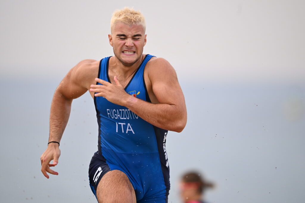 Racing got underway with the timetrials for the coastal under 10 men’s solos, an event featuring debut appearances for several nations. However, the fastest eight solos – progressing directly to the knockout rounds – were all experienced competitors. Spain’s Ignacio Ramon-Borja, fourth at the recent European Rowing Beach Sprint Finals, was the fastest, ahead of Felix Krones of Germany and European champion Sol Chamberlain-Hyde (Great Britain) in third. Dinis Oliveira of Portugal squeezed into the top eight just over a second ahead of Poland’s Adam Kowalczyk.