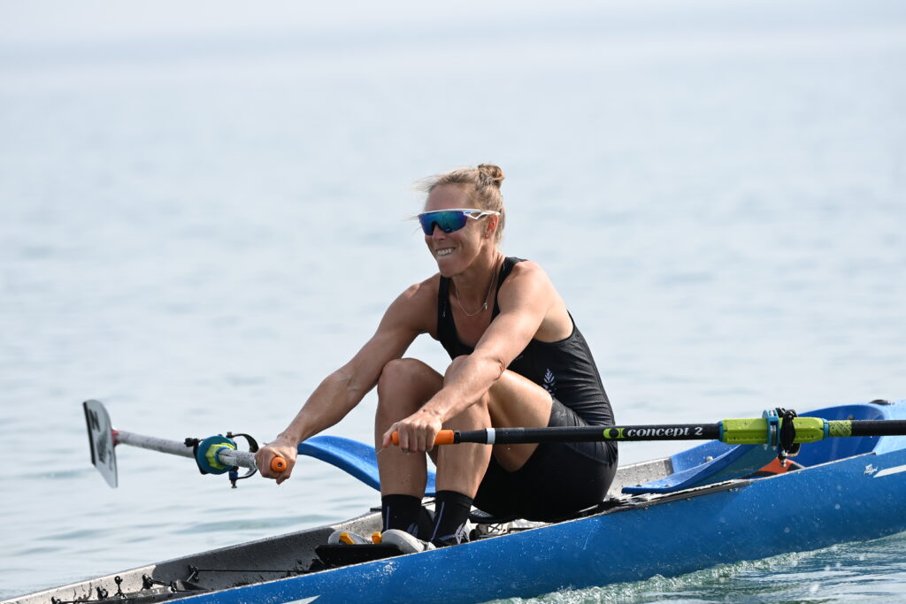 Tokyo 2020 Olympic champion Emma Twigg won the 2022 World Rowing Beach Sprint Finals based on her timetrial result after racing had to be cancelled; last year she missed out on the medals. Twigg has again arrived in excellent form, and won the timetrial almost 2.5 seconds clear of second-placed Julia Tertuente (Germany). Defending world and European champion Magdalena Lobnig (Austria) was sixth. Teresa Diaz Moreno (Spain), a two-time beach sprint champion in the mixed quadruple sculls, missed out on direct progression by 0.09 seconds and must race the second timetrial with the rest of the field.